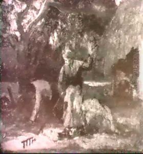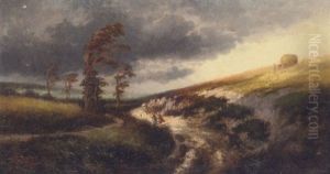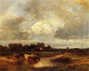 Gewitterlandschaft Mit Einer Kuhherde An Der Tranke