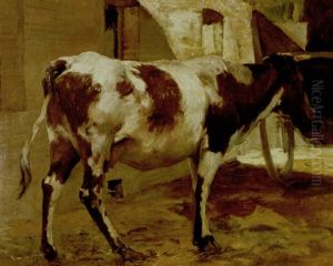 Pige, Der Fodrer En Sortbroget Ko Pa En Eng