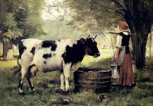 Bring the timeless beauty of Julien Dupre's The Milkmaid into your home with a handmade oil painting reproduction. Carefully recreated on canvas by skilled artists using traditional techniques, this piece captures the delicate brushwork, subtle light, and vibrant color of the original masterpiece. With museum-level quality and rich texture, it brings elegance and artistic depth to any space. Enjoy free shipping and make this masterpiece a part of your personal collection.