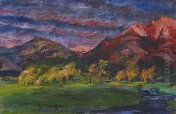 Bring the timeless beauty of Julius Exter's Vorgebirgslandschaft Im Abendrot into your home with a handmade oil painting reproduction. Carefully recreated on canvas by skilled artists using traditional techniques, this piece captures the delicate brushwork, subtle light, and vibrant color of the original masterpiece. With museum-level quality and rich texture, it brings elegance and artistic depth to any space. Enjoy free shipping and make this masterpiece a part of your personal collection.
