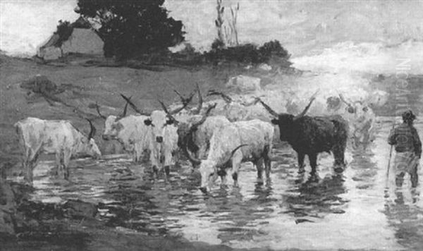 Rinderherde An Der Tranke In Der Ungarischen Pusta