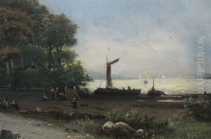 A Horse-drawn Cart On A Towing Path Near A Castle