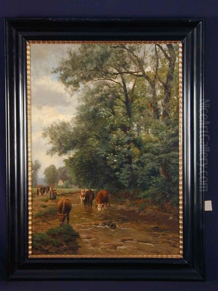 Hirtin Mit Kind U. Kuhen An Der Tranke