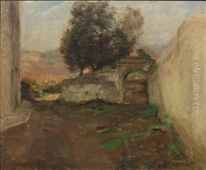 Italian Landscape With Ruins And Woman On The Road