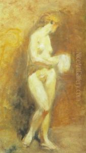 Laesende Mand Og Pige I Kunstnerens Have I Tibirke