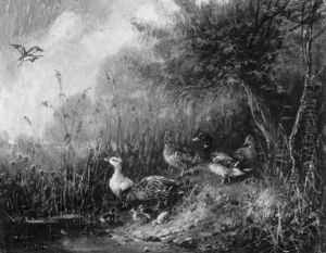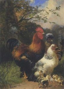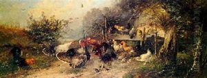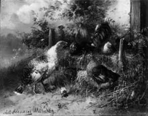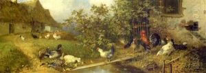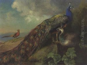 Huhner An Der Tranke (+ Enten Und Ein Pfauenpaar An Einem Teich; 2 Works)