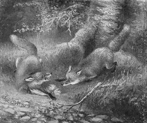 Zwei Dackel Und Ein Huhnerhund Mit Erlegtem Hasen Im Maul