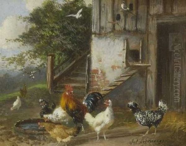 Huhnerhof Oil Painting by Julius Scheuerer