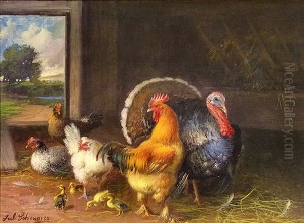 Bring the timeless beauty of Julius Scheuerer's Truthahn, Hahn Und Huhner Mit Kuken Im Stall into your home with a handmade oil painting reproduction. Carefully recreated on canvas by skilled artists using traditional techniques, this piece captures the delicate brushwork, subtle light, and vibrant color of the original masterpiece. With museum-level quality and rich texture, it brings elegance and artistic depth to any space. Enjoy free shipping and make this masterpiece a part of your personal collection.