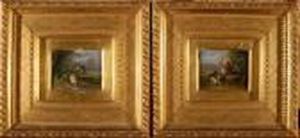 Companions,poultry, Ducks And Peacock By A Woodland Pool