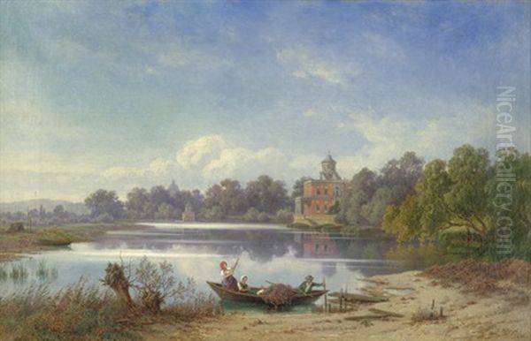 Blick Auf Den Heiligen See Mit Dem Marmorpalais, Im Vordergrund Bauern In Einem Fischerboot