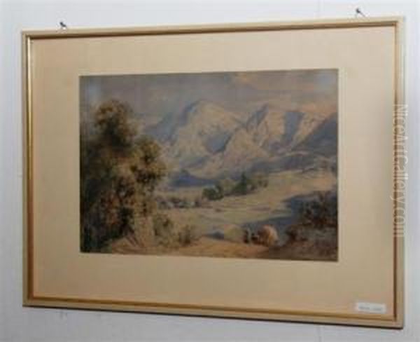 Gebirgslandschaft Mit Bauern, Einen Heuwagen Ziehend