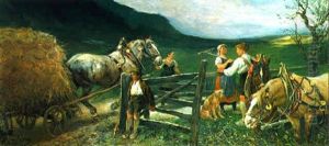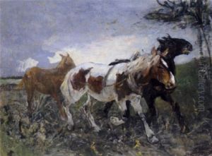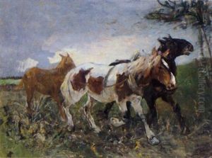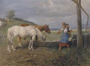 Ungarische Bauern Am Ziehbrunnen Beim Tranken Der Pferde