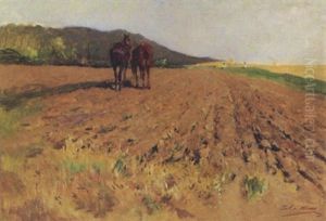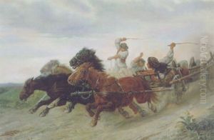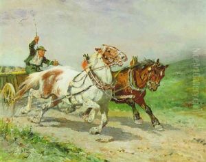 Rasantes Pferdegespann Mit Bauer Auf Dem Heimweg