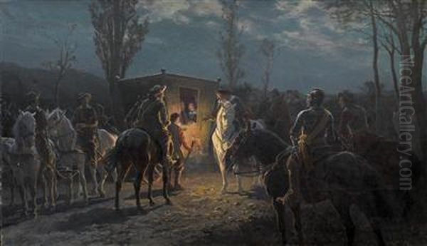 Bring the timeless beauty of Julius von Blaas's Night-time Scene. Horsemen Detain An Elegant Carriage into your home with a handmade oil painting reproduction. Carefully recreated on canvas by skilled artists using traditional techniques, this piece captures the delicate brushwork, subtle light, and vibrant color of the original masterpiece. With museum-level quality and rich texture, it brings elegance and artistic depth to any space. Enjoy free shipping and make this masterpiece a part of your personal collection.