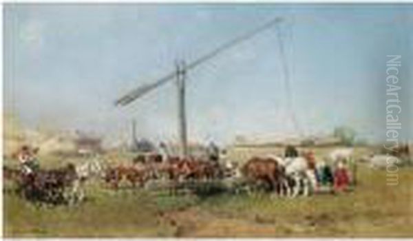 Pferdetranke In Ober-ungarn (horses Watering By A Well)