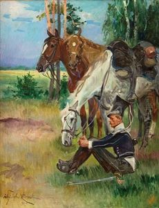 Bring the timeless beauty of Juliusz Kossak's Hetman Kozacki Zmija Na Polowaniu Z Sokolem into your home with a handmade oil painting reproduction. Carefully recreated on canvas by skilled artists using traditional techniques, this piece captures the delicate brushwork, subtle light, and vibrant color of the original masterpiece. With museum-level quality and rich texture, it brings elegance and artistic depth to any space. Enjoy free shipping and make this masterpiece a part of your personal collection.