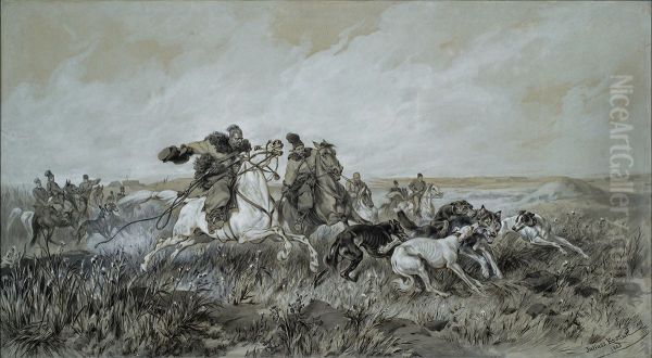 Bring the timeless beauty of Juliusz Kossak's Polowanie stepowe na wilka into your home with a handmade oil painting reproduction. Carefully recreated on canvas by skilled artists using traditional techniques, this piece captures the delicate brushwork, subtle light, and vibrant color of the original masterpiece. With museum-level quality and rich texture, it brings elegance and artistic depth to any space. Enjoy free shipping and make this masterpiece a part of your personal collection.
