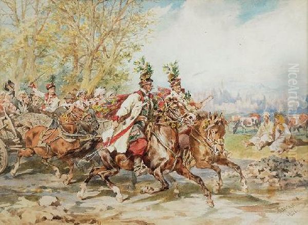 Bring the timeless beauty of Juliusz Kossak's Wesele Krakowskie into your home with a handmade oil painting reproduction. Carefully recreated on canvas by skilled artists using traditional techniques, this piece captures the delicate brushwork, subtle light, and vibrant color of the original masterpiece. With museum-level quality and rich texture, it brings elegance and artistic depth to any space. Enjoy free shipping and make this masterpiece a part of your personal collection.