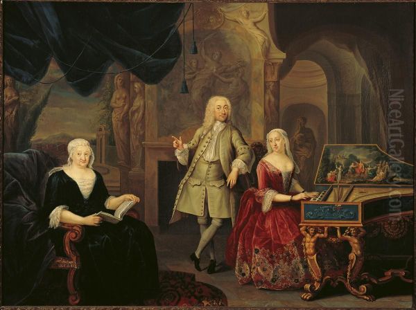 Portrait of Jacob Ploos van Amstel 1695-1760), Sara Rothe (1692-1751) and (probably) Margaretha van Tol (?-1734)