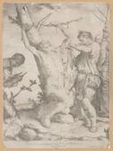 Ein Hirte Beim Flotenspiel.