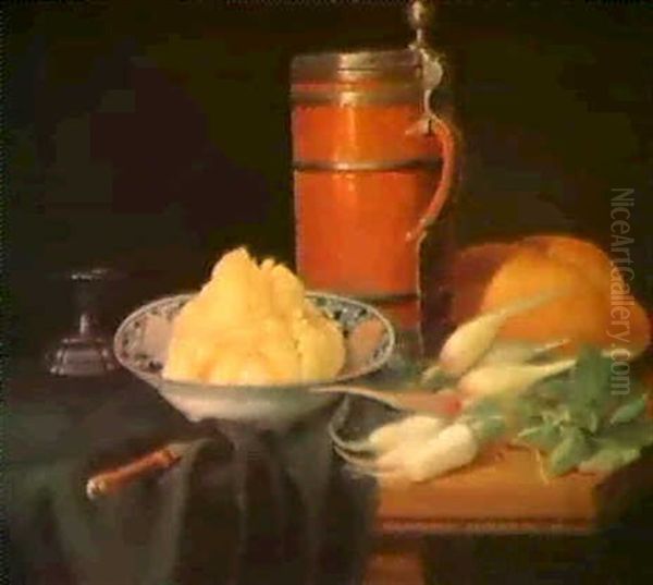 Stilleben Mit Butter, Rettichen Und Einem Tonkrug