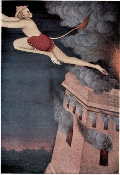 Bring the timeless beauty of K. Venkatappa's Burning of Lanka into your home with a handmade oil painting reproduction. Carefully recreated on canvas by skilled artists using traditional techniques, this piece captures the delicate brushwork, subtle light, and vibrant color of the original masterpiece. With museum-level quality and rich texture, it brings elegance and artistic depth to any space. Enjoy free shipping and make this masterpiece a part of your personal collection.