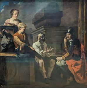 A Gypsy Playing The Guitar And A Boy Playing The Tambourine, While A Girl Dances With A Dog, In An Italianate Landscape