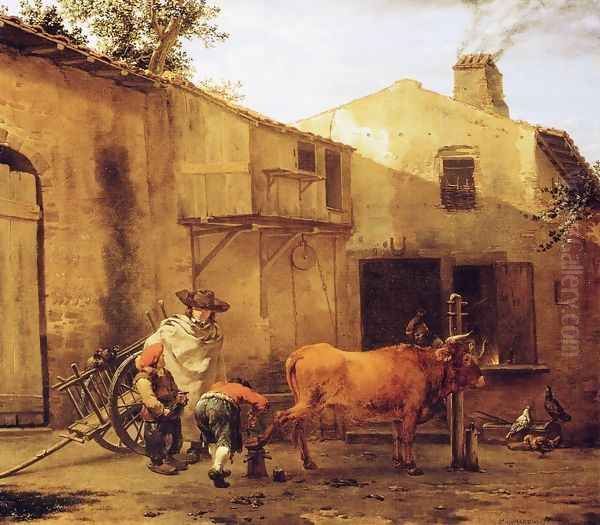 Bring the timeless beauty of Karel Dujardin's A Smith Shoeing an Ox into your home with a handmade oil painting reproduction. Carefully recreated on canvas by skilled artists using traditional techniques, this piece captures the delicate brushwork, subtle light, and vibrant color of the original masterpiece. With museum-level quality and rich texture, it brings elegance and artistic depth to any space. Enjoy free shipping and make this masterpiece a part of your personal collection.