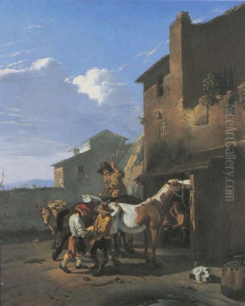 Bring the timeless beauty of Karel Dujardin's Horsemen Before A Farriers into your home with a handmade oil painting reproduction. Carefully recreated on canvas by skilled artists using traditional techniques, this piece captures the delicate brushwork, subtle light, and vibrant color of the original masterpiece. With museum-level quality and rich texture, it brings elegance and artistic depth to any space. Enjoy free shipping and make this masterpiece a part of your personal collection.