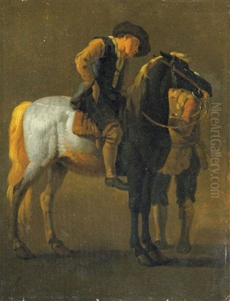 Bring the timeless beauty of Karel Dujardin's Reiter Mit Pferdeknecht into your home with a handmade oil painting reproduction. Carefully recreated on canvas by skilled artists using traditional techniques, this piece captures the delicate brushwork, subtle light, and vibrant color of the original masterpiece. With museum-level quality and rich texture, it brings elegance and artistic depth to any space. Enjoy free shipping and make this masterpiece a part of your personal collection.