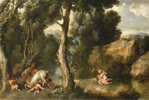 A Wooded Landscape With Amorous Couples Making Music Before A Herm Of Bacchus