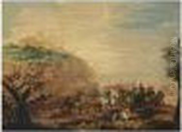 A Cavalry Battle Scene Oil Painting by Karel Van Breydel (Le Chevalier)