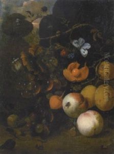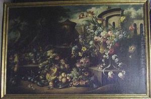 Grosses Blumenstilleben Mit Obst Und Erlegten Wildvogeln