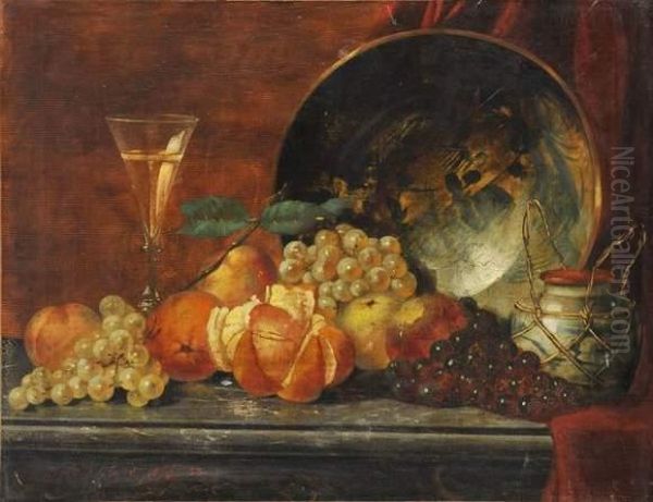 Nature Morte Aux Raisins, Oranges Et Ceramiques Japonaises