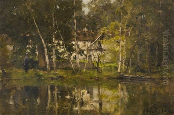 Bewaldete Teichlandschaft Mit Bauerngehoft