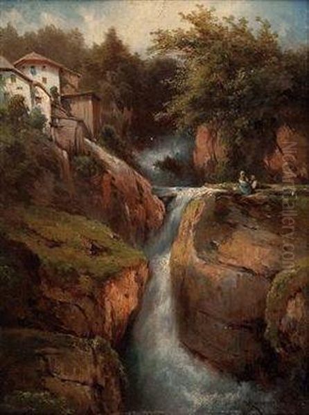 "dermuhlbachfall In Hallstatt Mit Figurenstaffage"