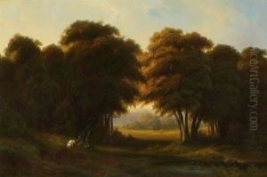 Eichenwald Mit Rastendem Jager