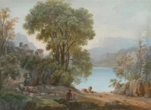 Landschaft Mit Hirte Und Tieren - Im Hintergrund Burgruine