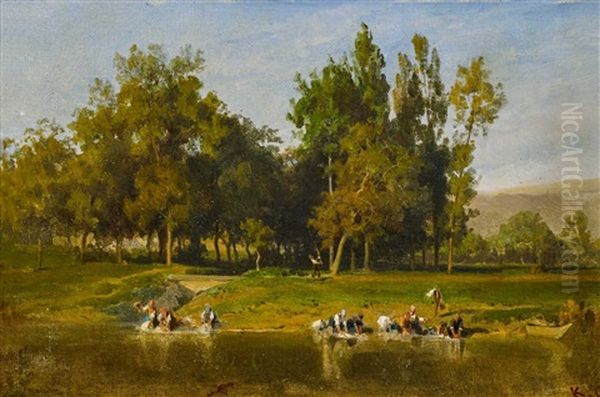 Bring the timeless beauty of Karl Girardet's Les Lavandieres A La Riviere into your home with a handmade oil painting reproduction. Carefully recreated on canvas by skilled artists using traditional techniques, this piece captures the delicate brushwork, subtle light, and vibrant color of the original masterpiece. With museum-level quality and rich texture, it brings elegance and artistic depth to any space. Enjoy free shipping and make this masterpiece a part of your personal collection.