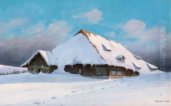 Bring the timeless beauty of Karl Hauptmann's Black Forest Farmhouse In The Glow Of The Sunset into your home with a handmade oil painting reproduction. Carefully recreated on canvas by skilled artists using traditional techniques, this piece captures the delicate brushwork, subtle light, and vibrant color of the original masterpiece. With museum-level quality and rich texture, it brings elegance and artistic depth to any space. Enjoy free shipping and make this masterpiece a part of your personal collection.