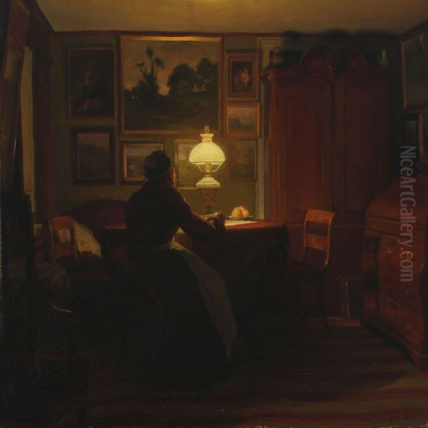 Bring the timeless beauty of Karl Jensen's Interior With Womanreading By The Lamp into your home with a handmade oil painting reproduction. Carefully recreated on canvas by skilled artists using traditional techniques, this piece captures the delicate brushwork, subtle light, and vibrant color of the original masterpiece. With museum-level quality and rich texture, it brings elegance and artistic depth to any space. Enjoy free shipping and make this masterpiece a part of your personal collection.