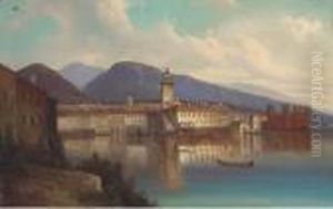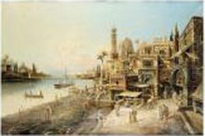 Castel Sant Angelo From The Tiber; And A Capriccio Of An Italian Town On A River
