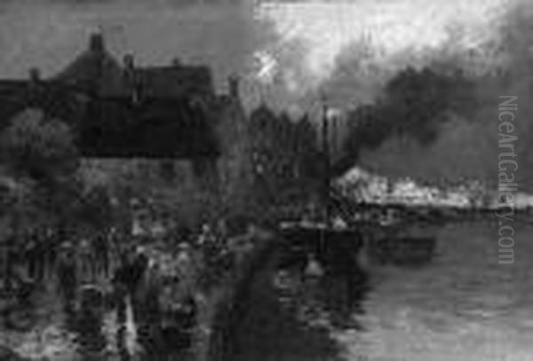 Schwartz, Karl "fischmarkt Am Hafen ". Sign. Ol Auf Lwd. 53 X 79 Cm. Rahmen