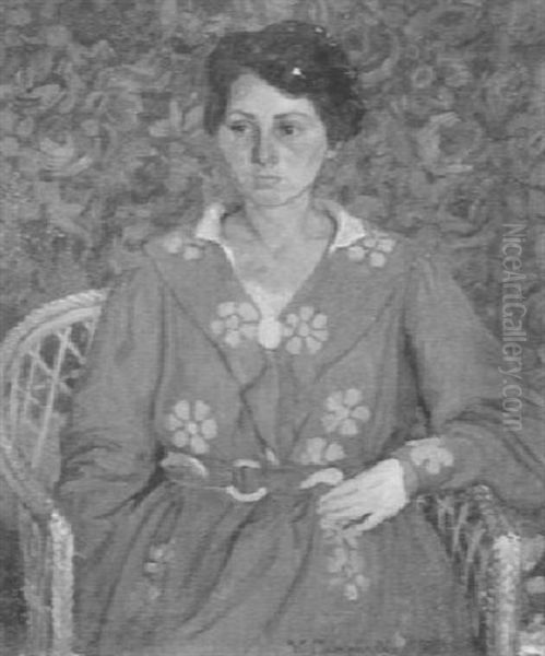 Bildnis Einer Frau Im Kleid Mit Blumen Und Vor Blumen