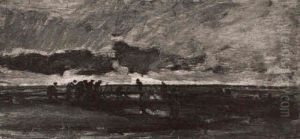 Pecheurs Sur La Plage Aux Environs De Villerville