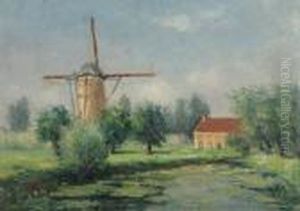 Village Scene With Cattle Being Driven Past The Mill