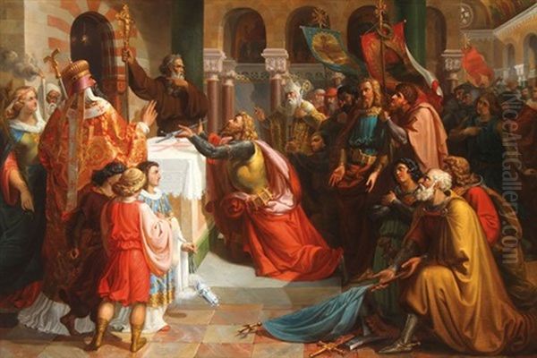 Godfrey Of Bouillon Dedicates His Sword To The Saviour Before An Altar