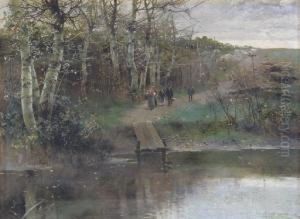 Villagers Along A Path Near A River, Possibly The River Main Or Mosel