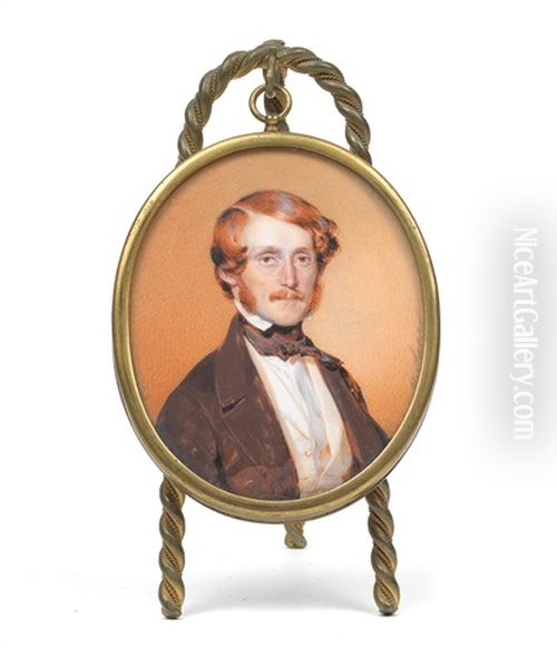 Bildnis Eines Rothaarigen Herrn In Schwarzem Rock Vor Orangem Hintergrund